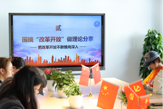 會(huì)議伊始,主持人介紹了本次活動(dòng)的背景與流程,活動(dòng)由兩個(gè)部分內(nèi)容組成,第一個(gè)內(nèi)容是全體黨員觀看短片《改革開放的偉大成就》,了解我國(guó)改革開放45周年來(lái)取得的巨大成就;第二項(xiàng)內(nèi)容是由全體黨員分享自己對(duì)改革開放的認(rèn)識(shí),進(jìn)行理論學(xué)習(xí)。