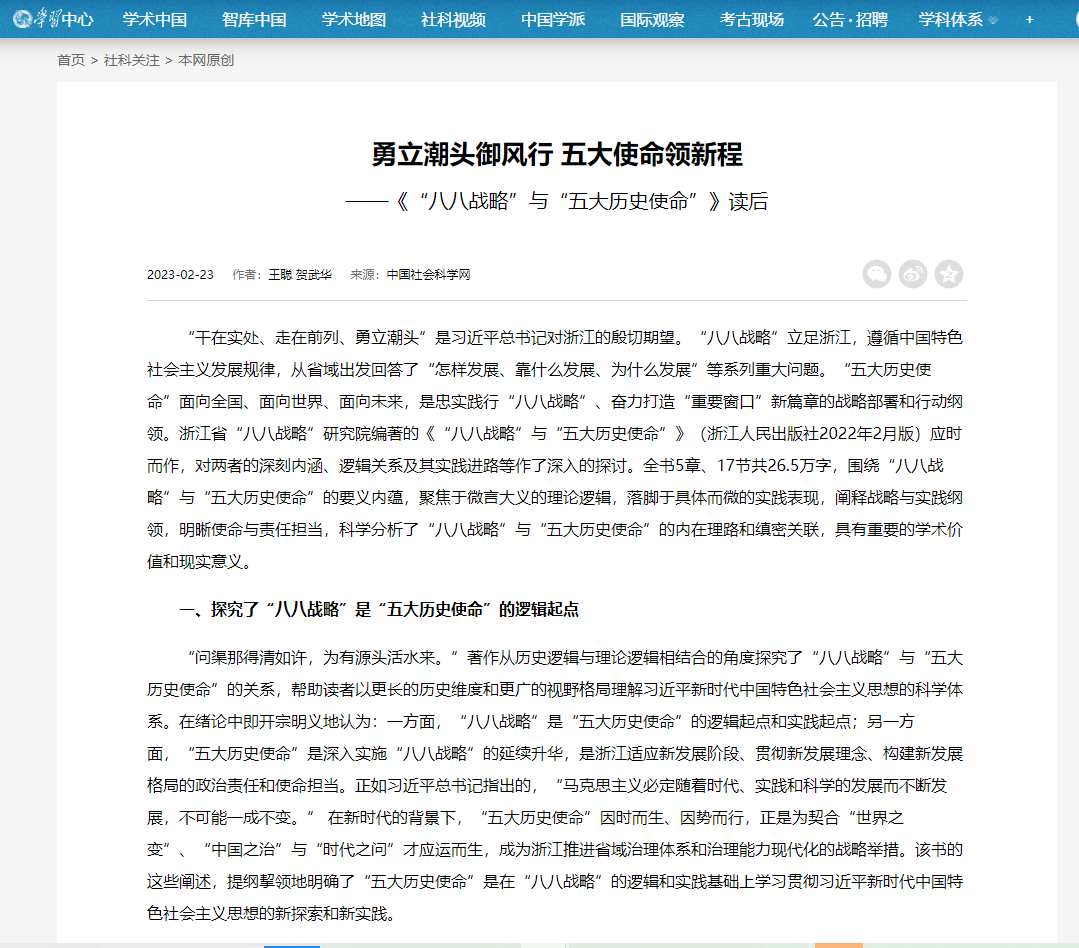 一、探究了“八八戰(zhàn)略”是“五大歷史使命”的邏輯起點(diǎn)