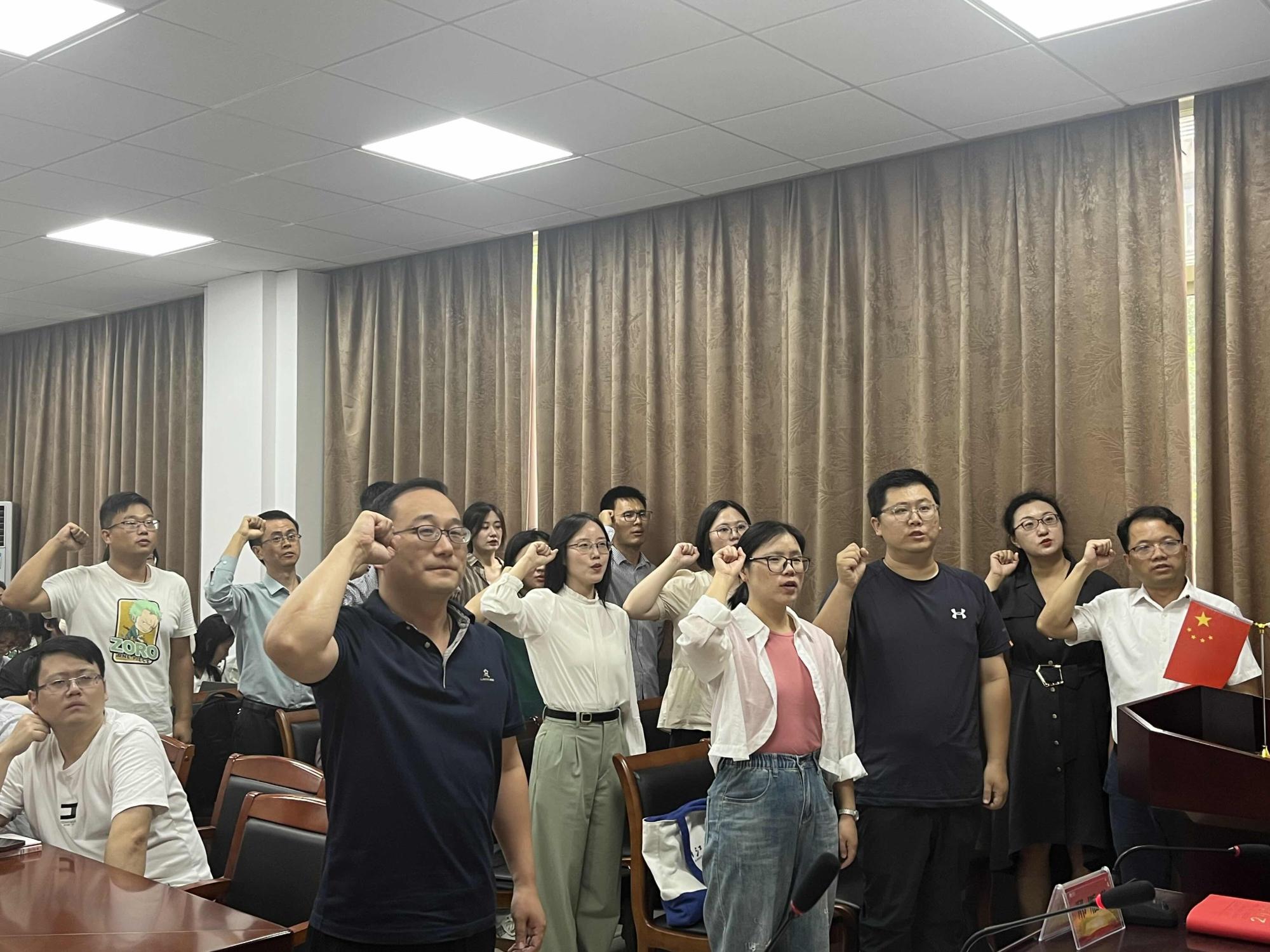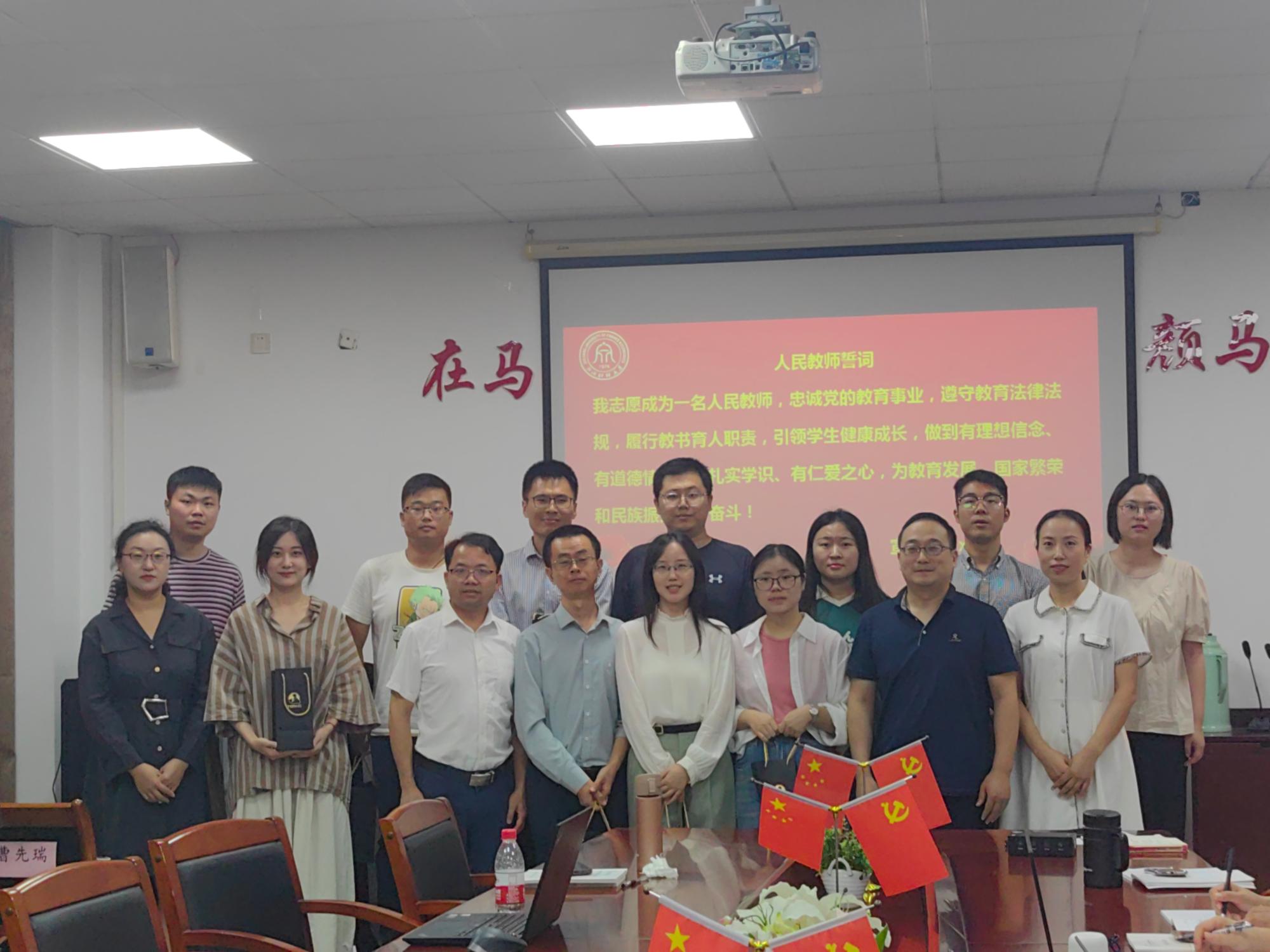 會議伊始,賀武華回顧了今年人才引進方面所取得的成績并代表學院向各位新老師的加盟表示熱烈的歡迎。每位新老師依次上臺作了自我展示,葉健輝作為新教師代表發言。隨后,全體新教師在黨委書記劉向前的帶領下進行莊嚴宣誓,表明了他們落實立德樹人根本任務,為黨育人,為國育才的堅定信心。