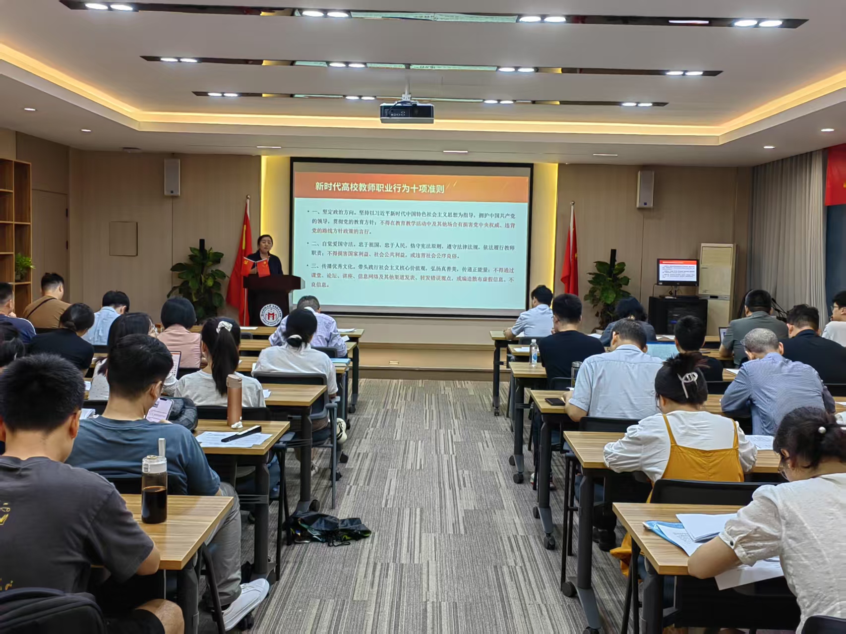 為深入推進師德師風建設,切實加強思想政治理論課教師隊伍培養,6月10日,學院于3號樓206會議室召開全體教職工大會暨師德師風警示教育大會。學院領導班子成員及全體教職工參會,院黨委書記高燕主持會議。