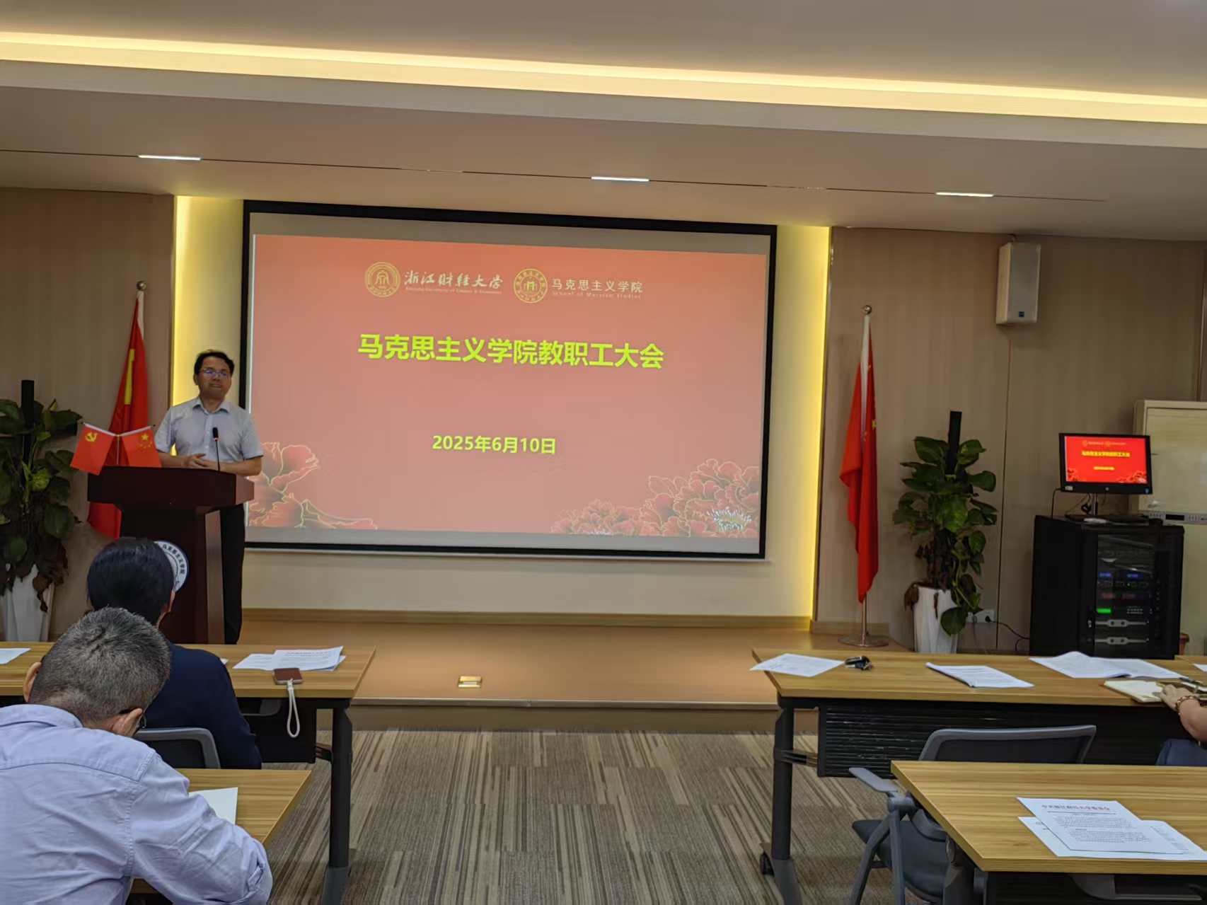 最后,賀武華院長總結分析了當前學院在學科建設、師資隊伍發展、教育教學等方面所面臨挑戰與機遇。他強調,要敏銳把握國家和學校發展的戰略導向,主動將個人成長融入“新財經戰略”,以“釘釘子”精神推動馬院高質量內涵式發展。